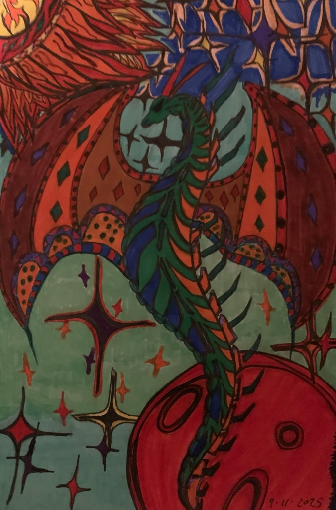 Ellarya lay on Alagron, this beautiful creature of the dark and possessed the Dragon’s Heart . Possession of the Dragon’s Heart ,the 3rd way to override a Ryder’s connection from his/ her Drake. Alagron and Ellarya’s 3 hearts beat together felt as if they were in unison. They laid together, Ellarya on Alagron’s chest with her head on his apex beat of his heart and Alagron had his tongue wrapped around Ellarya with the tip over her double hearts’ apex beats. They did not move and remained together and connected , in a trance. the beating of their hearts creating their unique musical blend. The heart beats like drums. The Universe was still and silent as they listened too because they could hear not 3 beating hearts but 7.