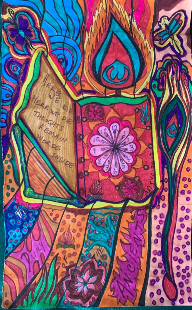 He was flying to the depths of her spiritual home, the base and source of many with gifts and powers. He was flung into the depths of her mountain from which she came. He saw her there in the heart of her mountain home and there surrounding her , he saw her Songbird’s wings around her. Surrounding them was her “clan” . Her people from which she came. Towering over her were her mother and grandmother: the spirits of Mahaji and Dhanya, never far.