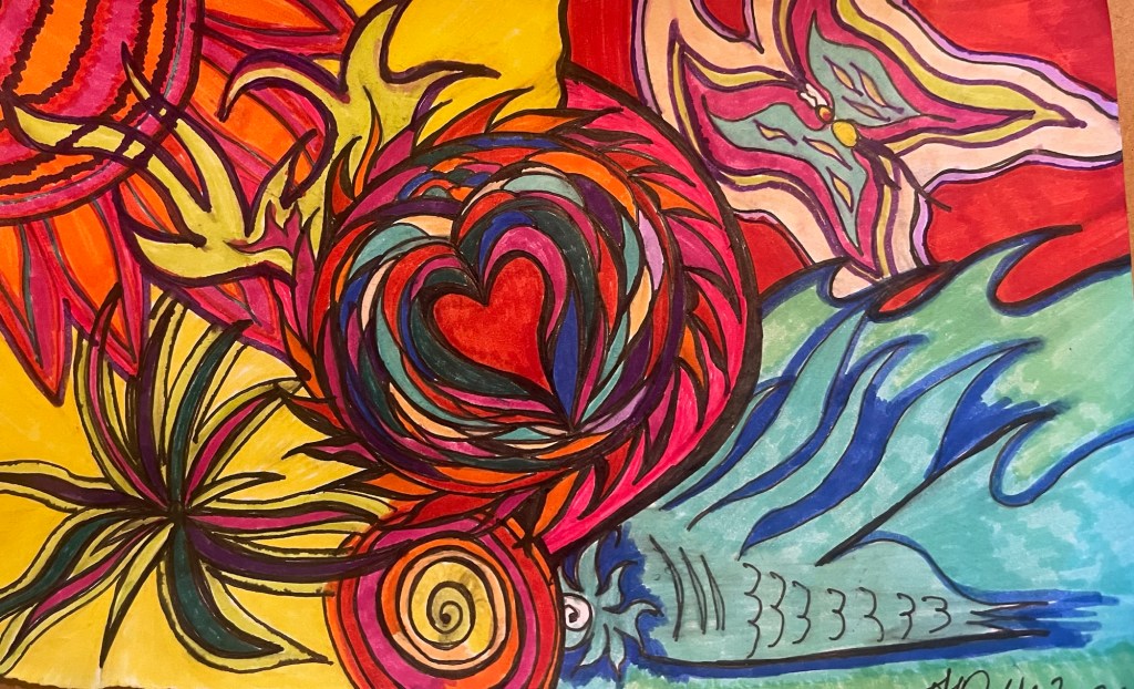 THEN, the deep internal proprioceptive vibrations were joined by the SOUNDS OF THUNDER! He kept the beat. Symbols danced across the sky as Thunder erupted and joined the glorious CHORUS ! Magickal sounds .